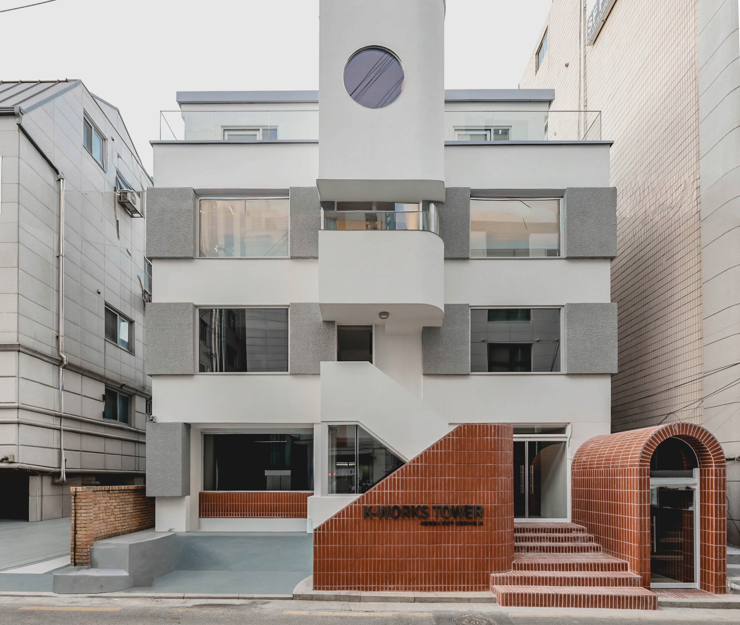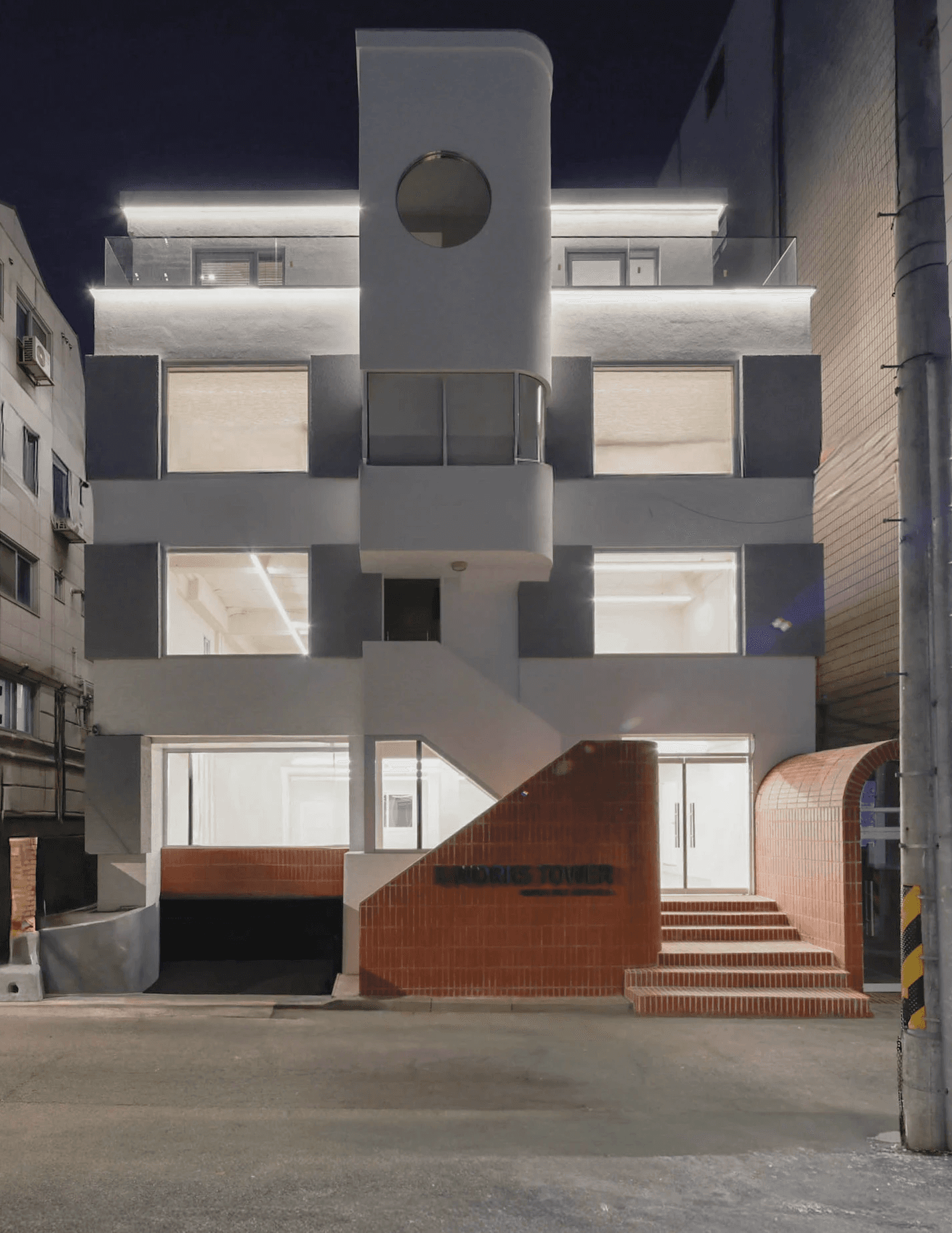 거친 질감의 그레이 패널을 리듬감 있게 배치해 입면에 깊이를 더했다.