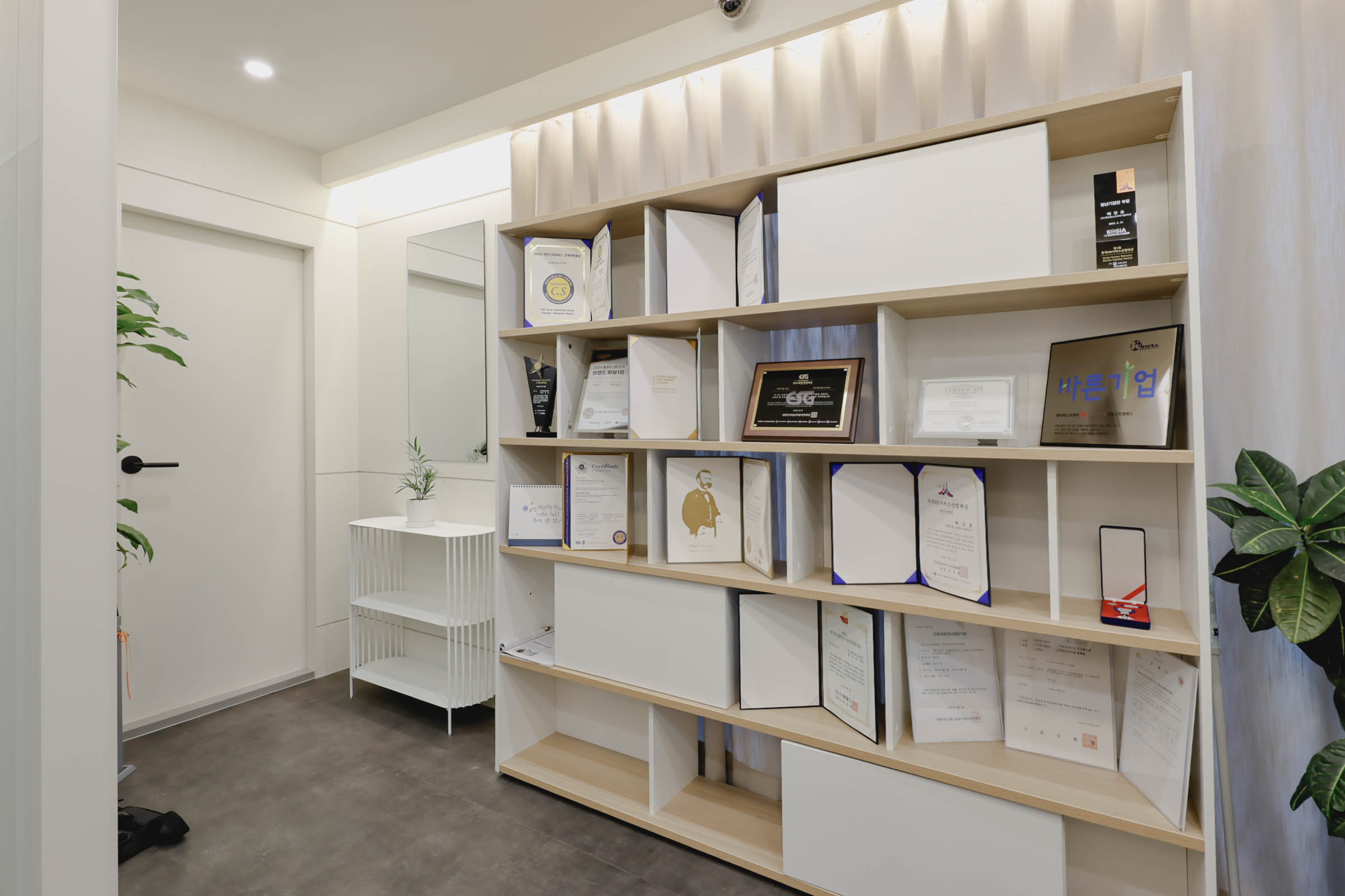 벽면의 장식장은 공간에 신뢰감을 자아낸다.