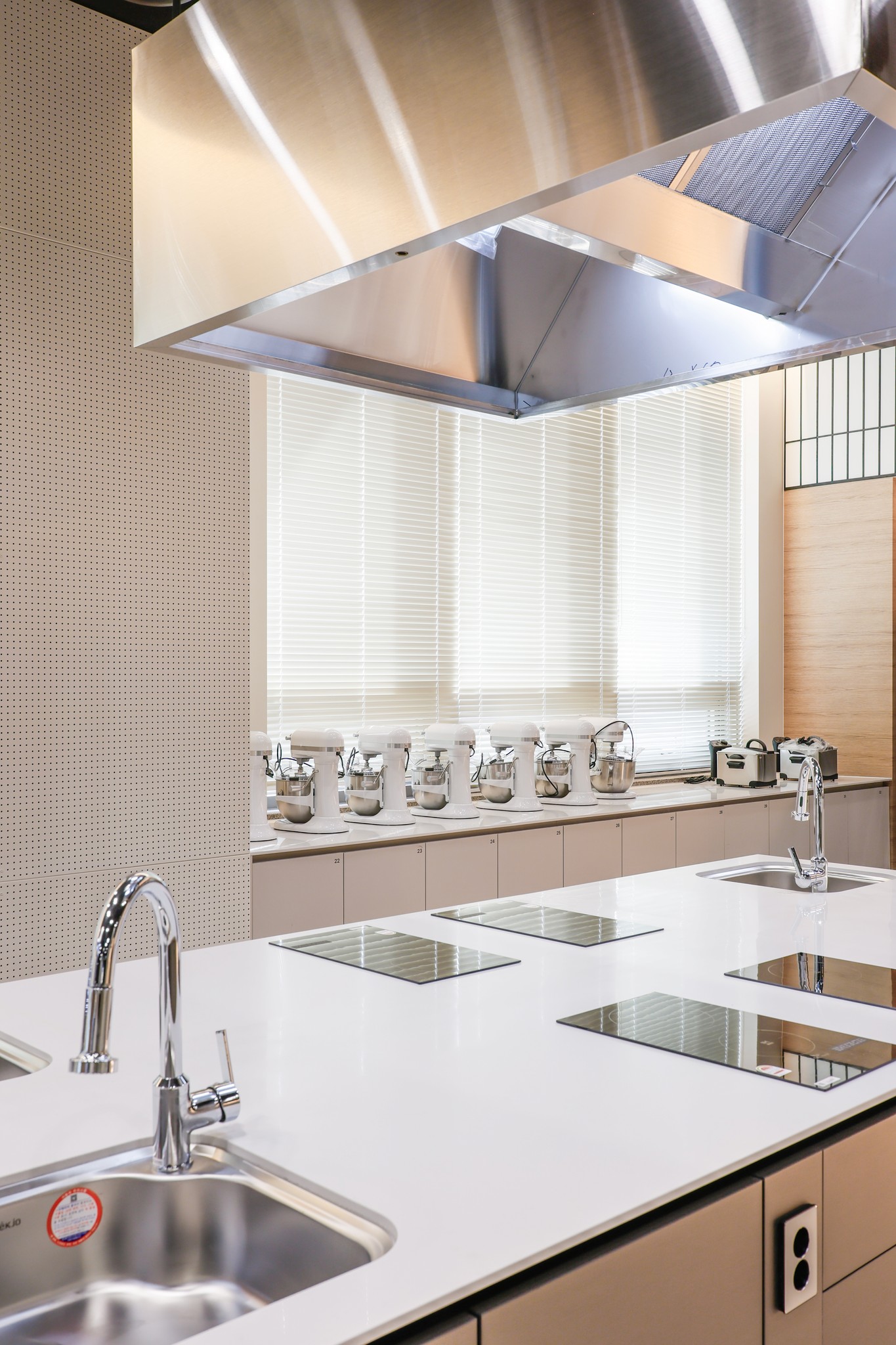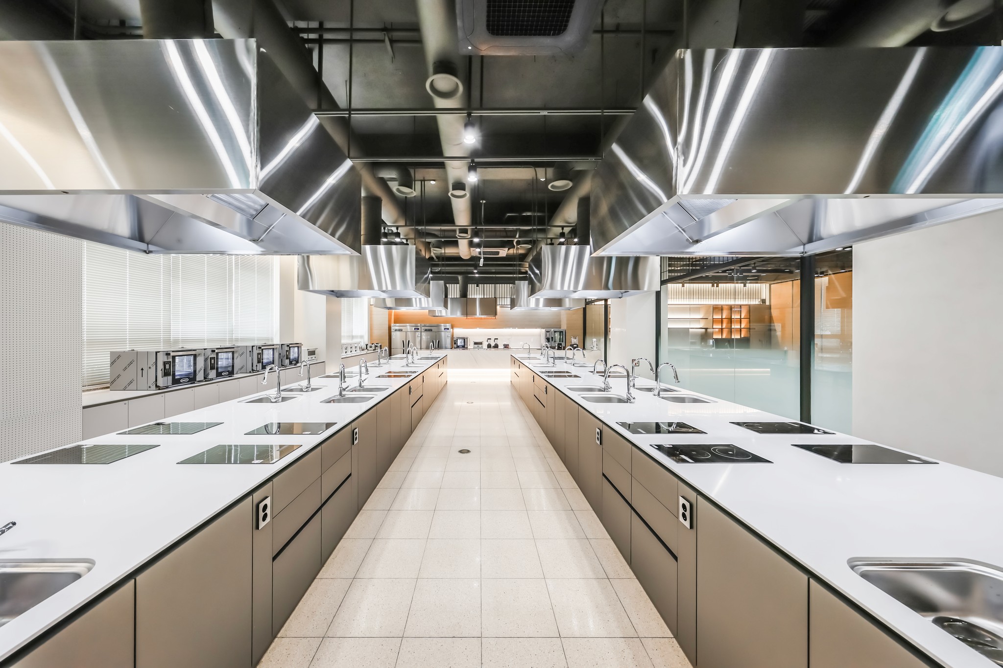 반듯하게 정리된 조리대와 기능적인 조명, 그리고 여유 있는 동선은 학습의 흐름에 집중할 수 있도록 설계되었으며,