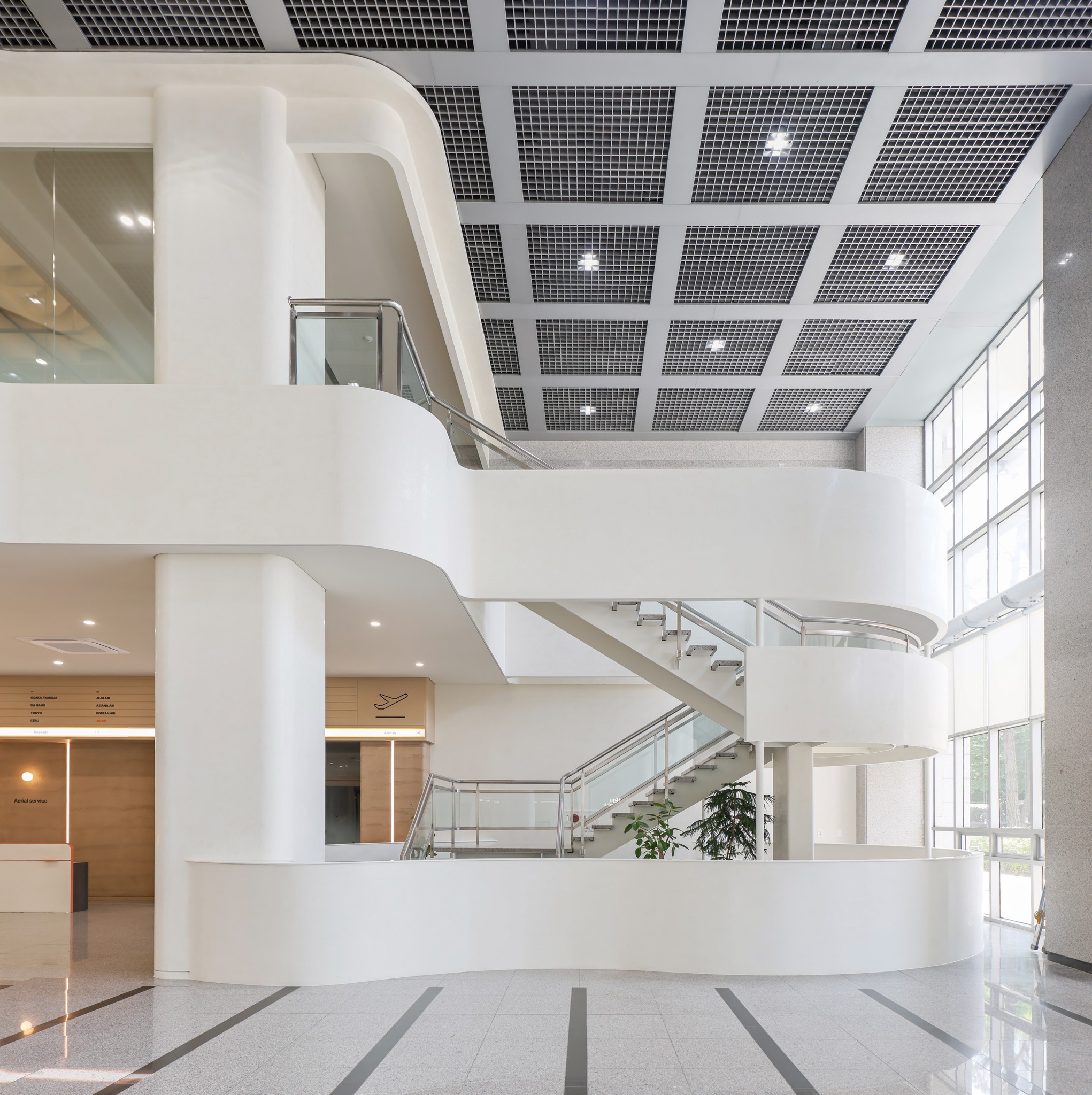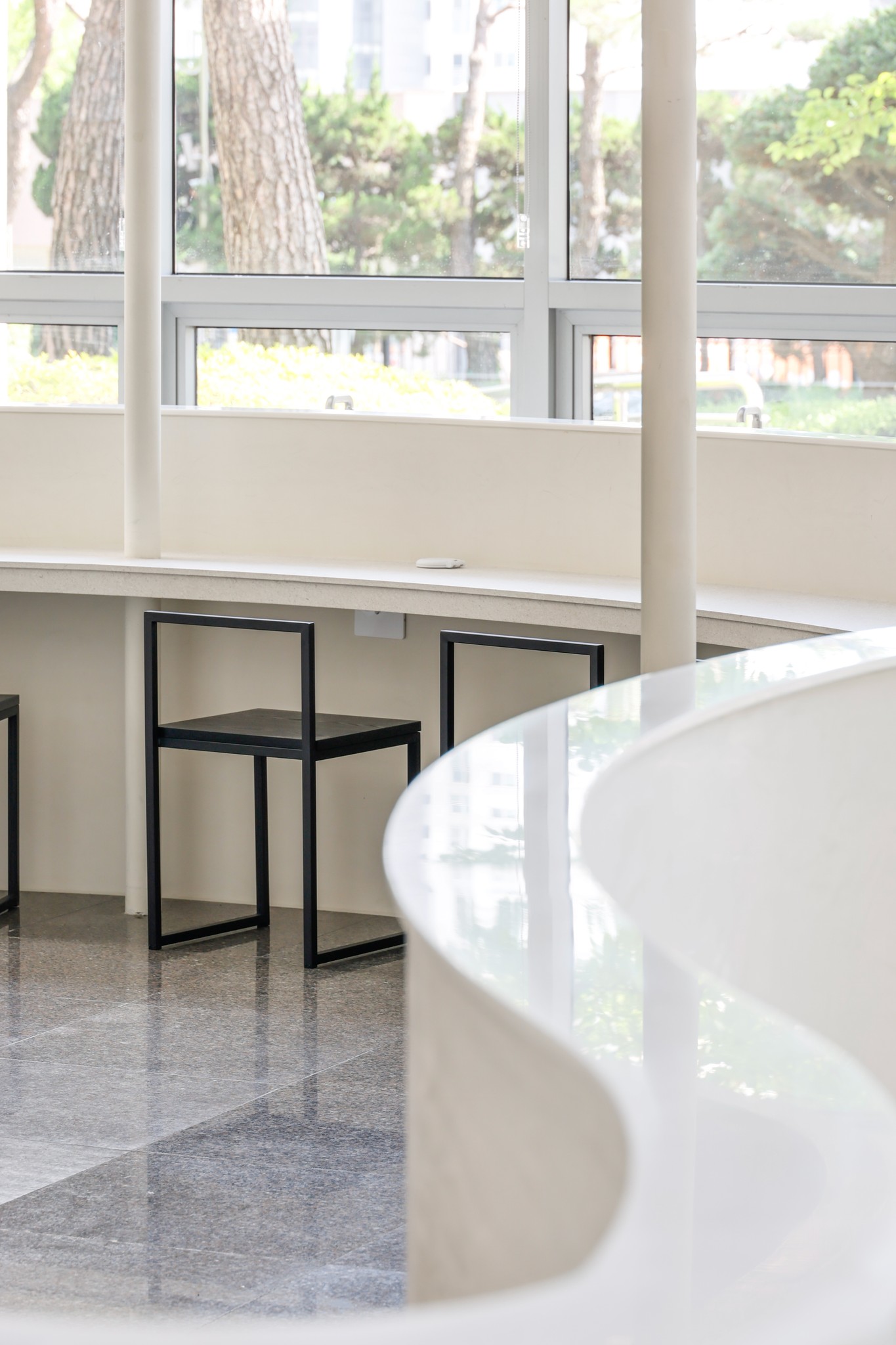 공간은 직선적으로 전개되지 않는다. 커브를 그리는 벽과 곡면의 천장은 사용자의 리듬에 호응하며, 자연스러운 동선과 시선을 유도한다.