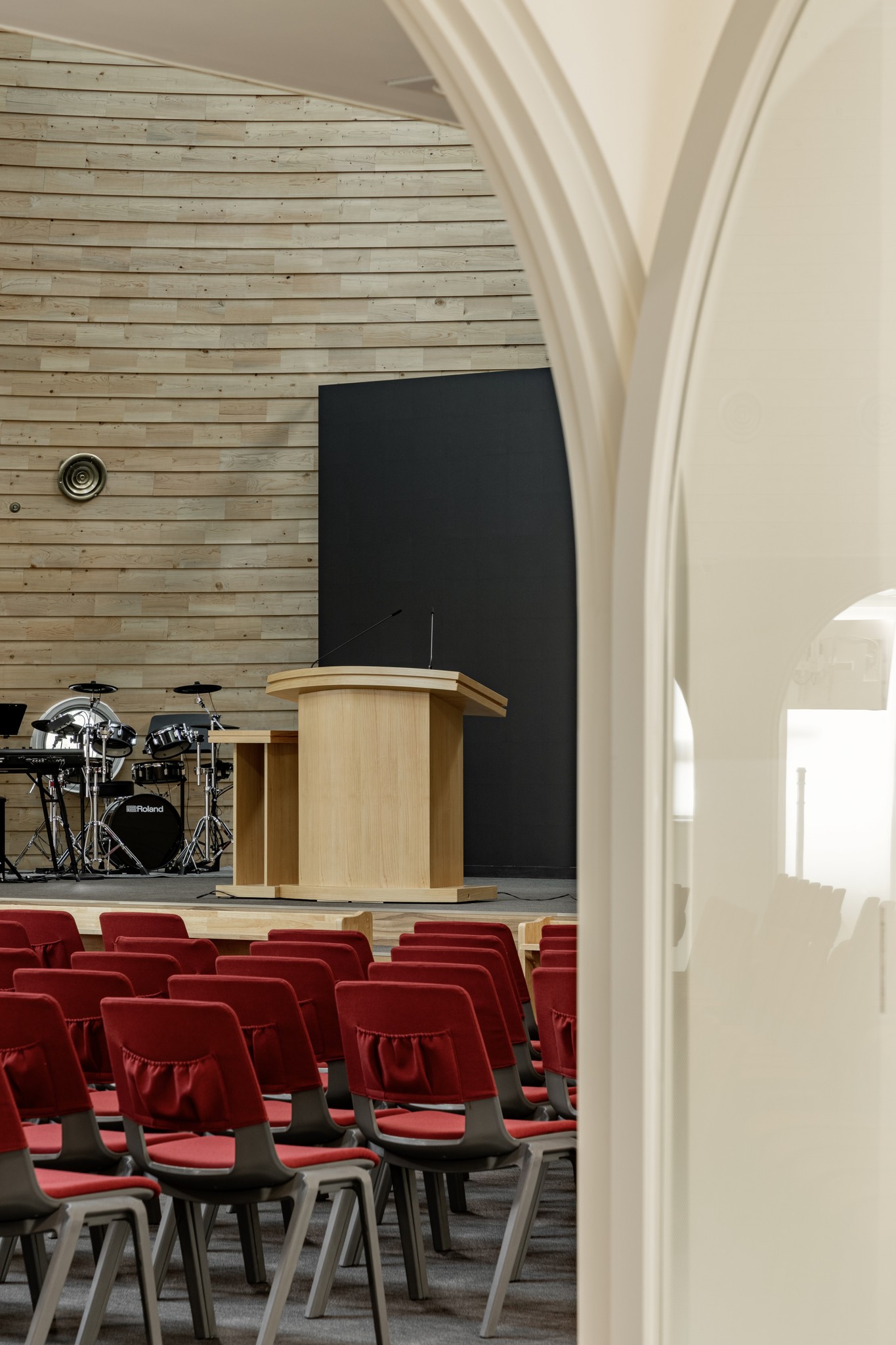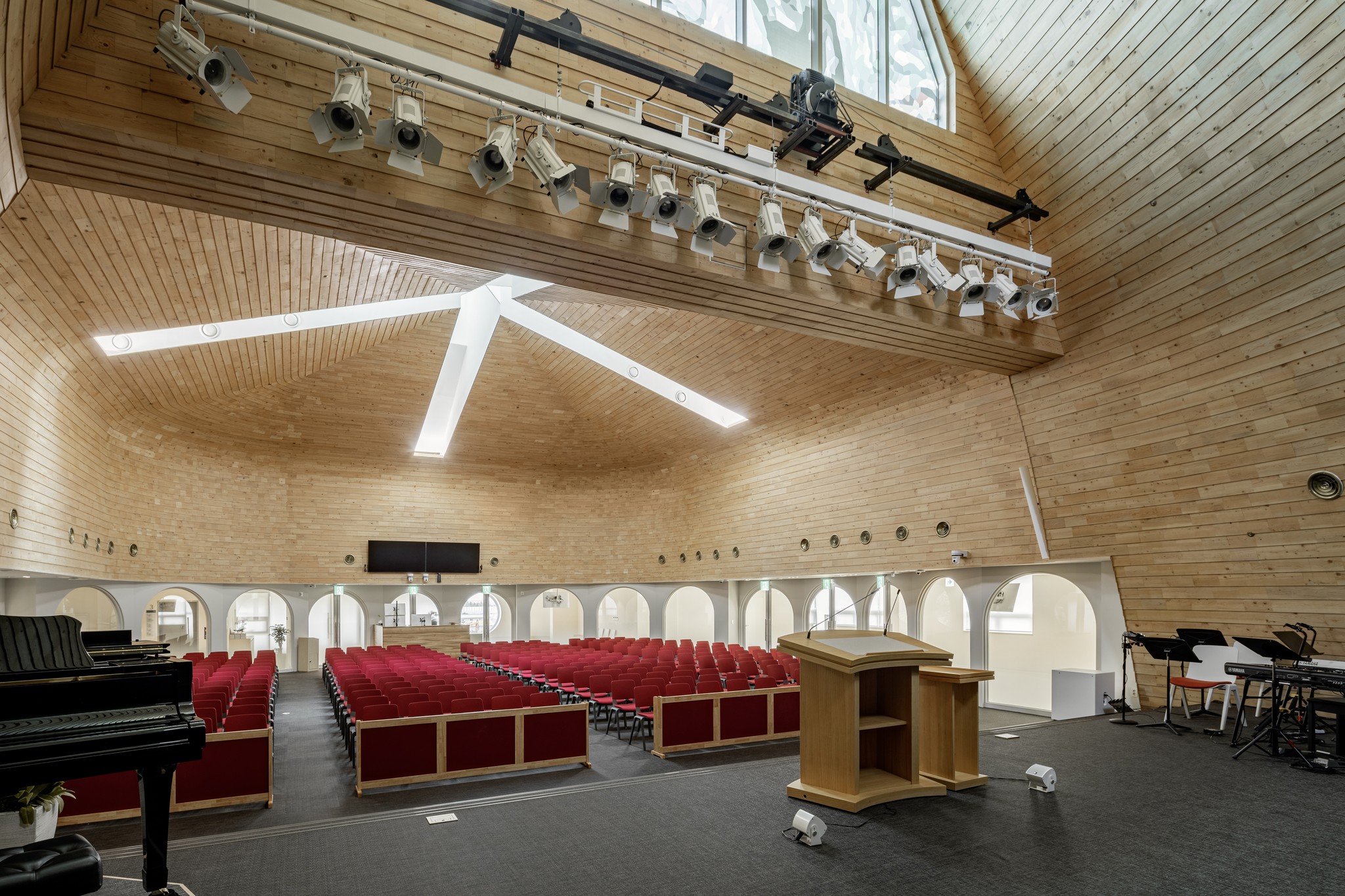 음향 설비와 무대 디자인 또한 예배 및 강연의 효율성을 극대화하도록 섬세하게 고려되었다.