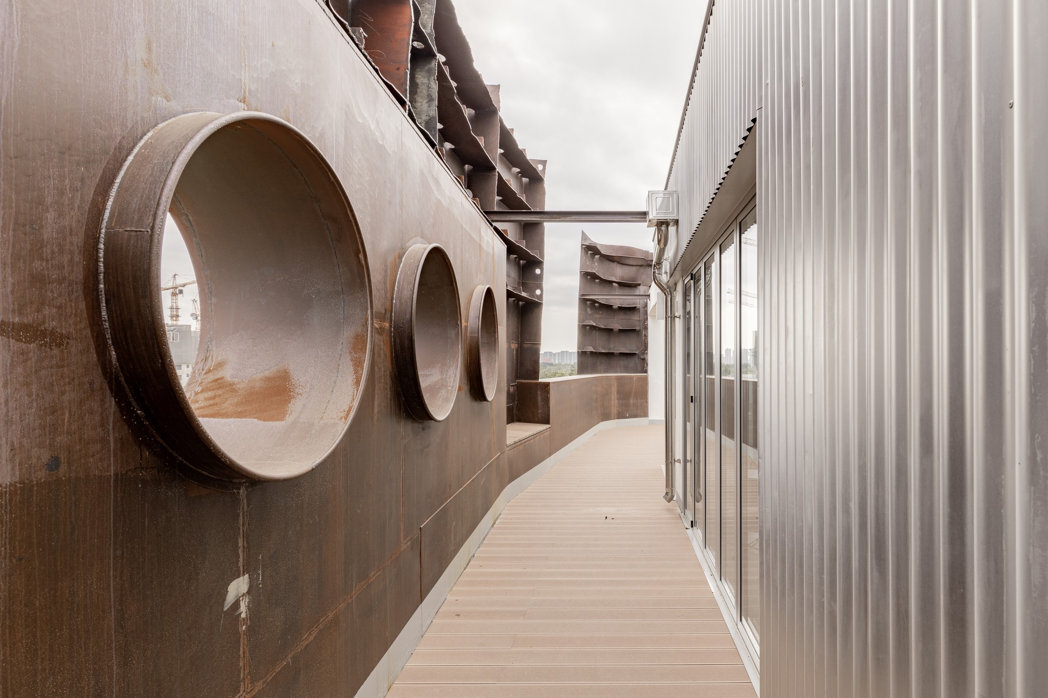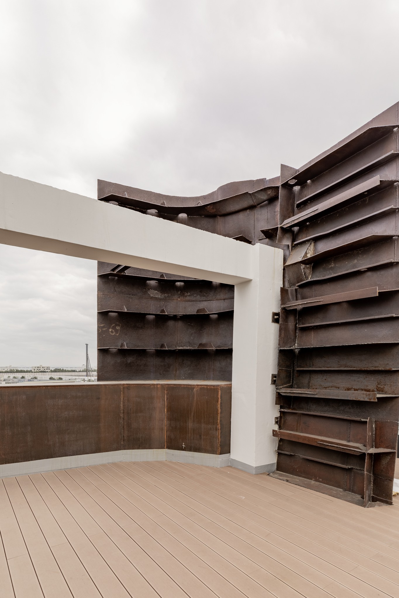 녹슨 듯한 코르텐 스틸의 질감과 유기적인 곡선,
