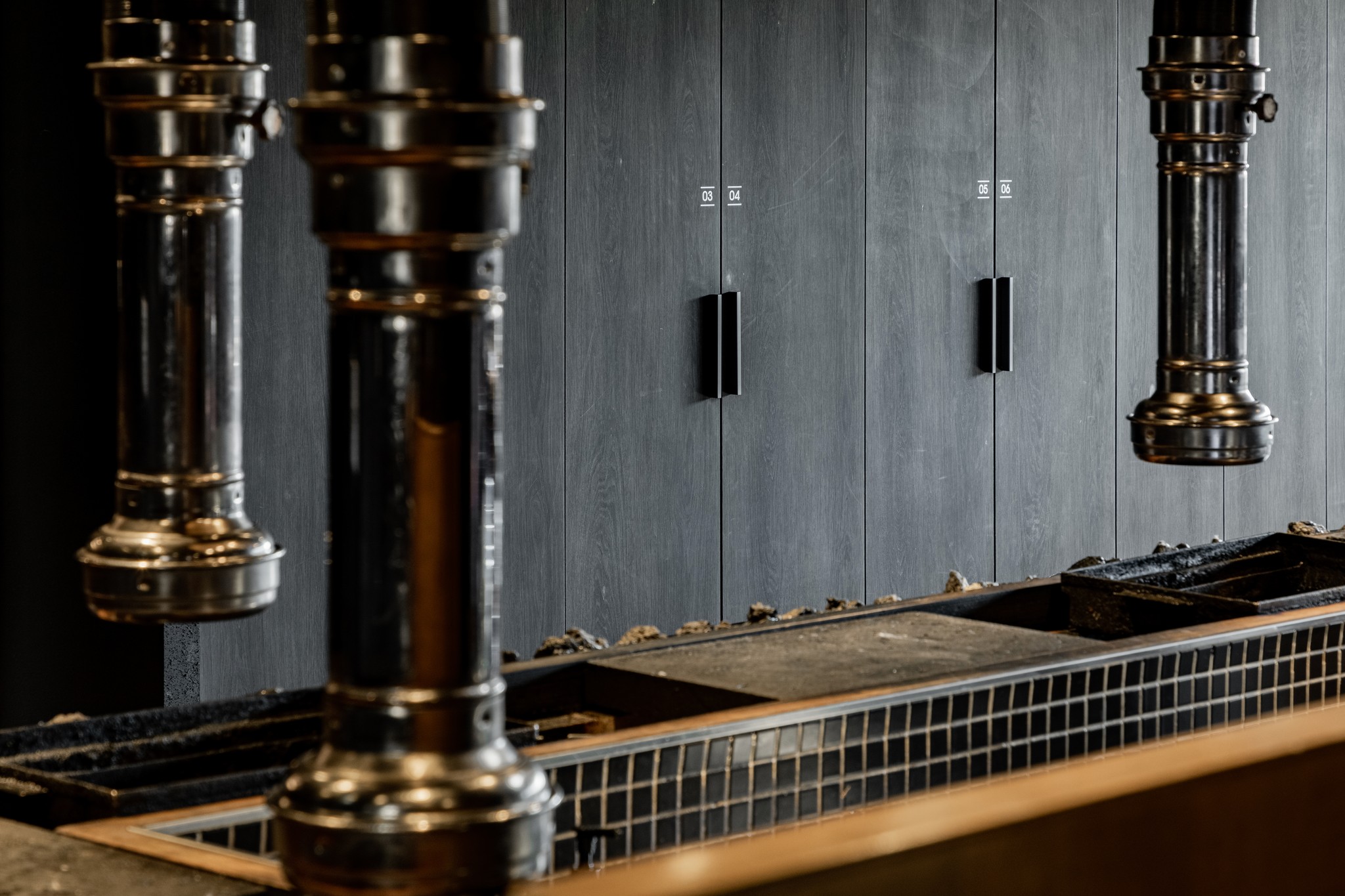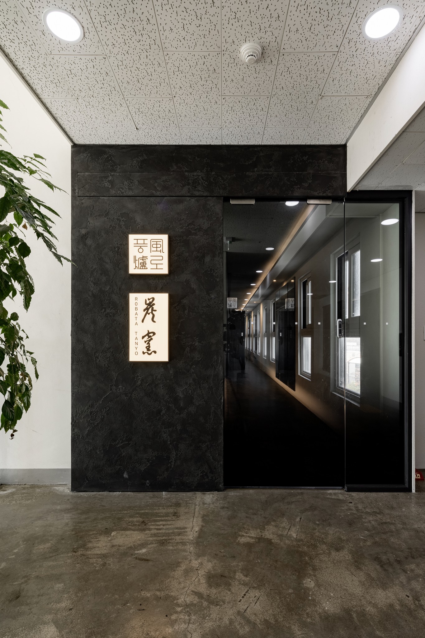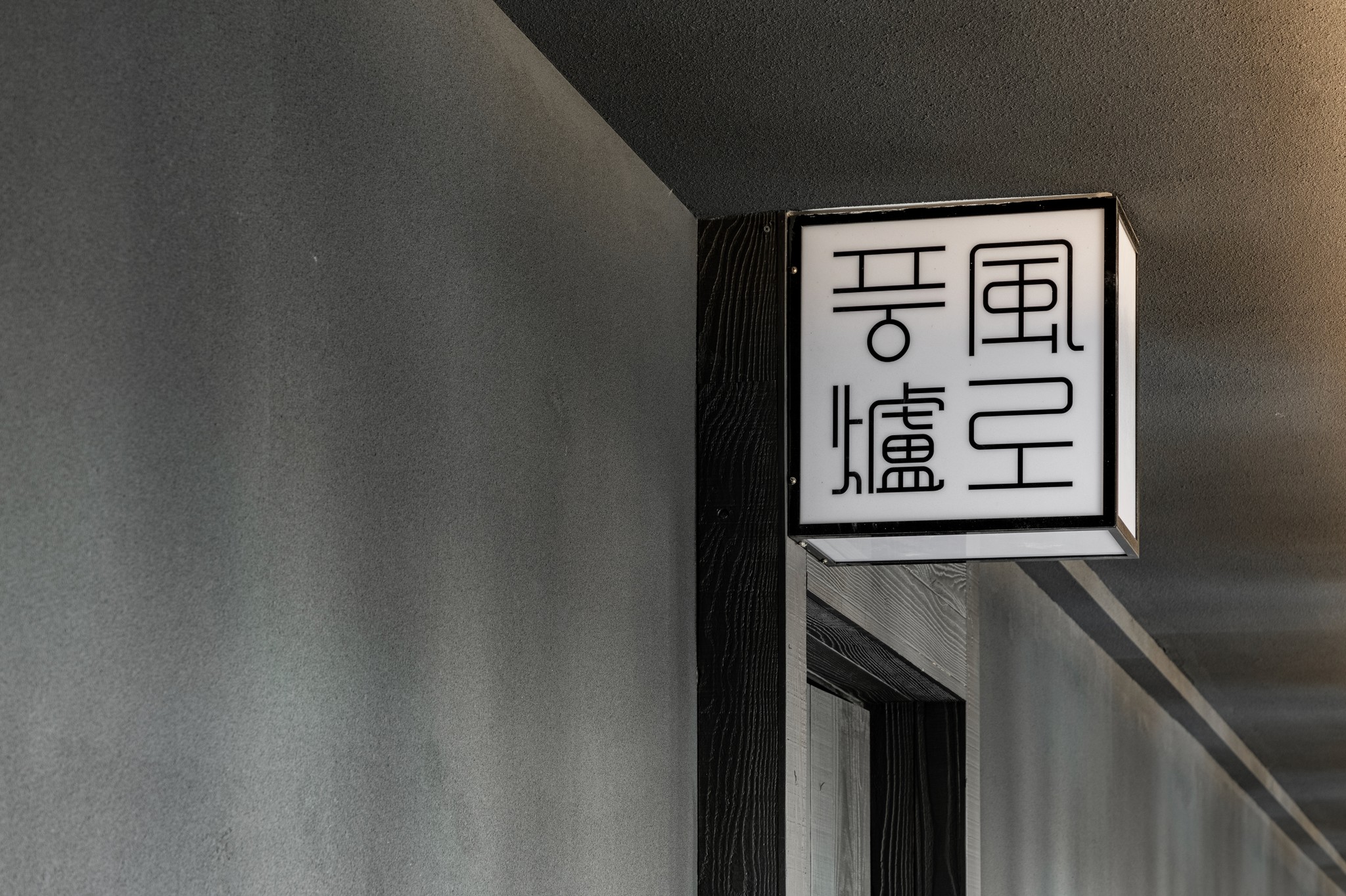 두 번째는 입구에서 마주하는 인상적인 대기 공간이다. 어두운 돌로 만들어진 듯한 긴 벤치는 마치 공중에 떠 있는 것처럼 연출되어 경외감을 자아낸다. 이 공간은 방문객들이 미식의 여정을 시작하기 전, 잠시 숨을 고르며 기대감을 키울 수 있는 프롤로그와 같다. 복도를 따라 이어진 어두운 톤의 벽면과 깔끔한 조명, 그리고 감각적인 로고 사인은 공간 전체의 통일된 아이덴티티를 보여준다.