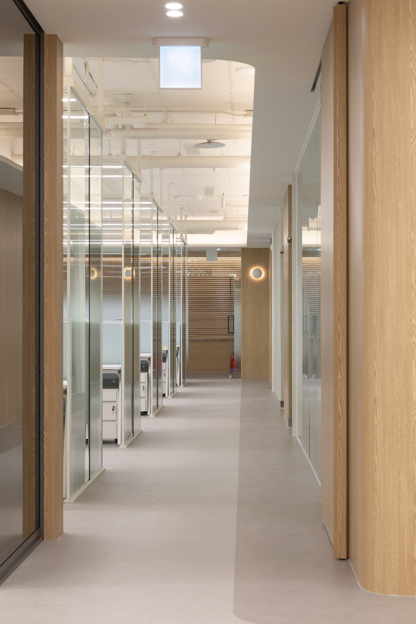 이어지는 복도와 오픈 오피스는 개방감과 집중력을 동시에 유지하도록 설계되었으며,